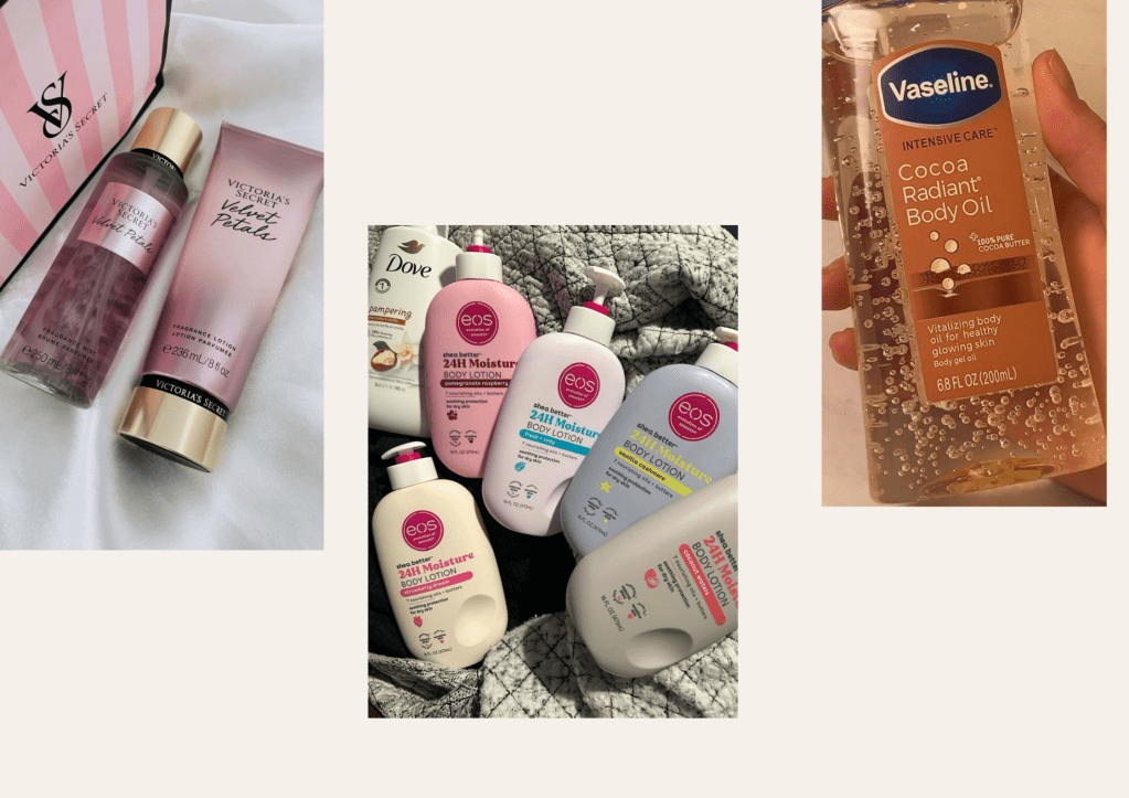 I strongly recommend EOS Lotion because it assist with both a fragrance and a moisturized finish with its multiple scents. Also Victoria’s Secret Lotions paired with a body spray can create a lasting effect.